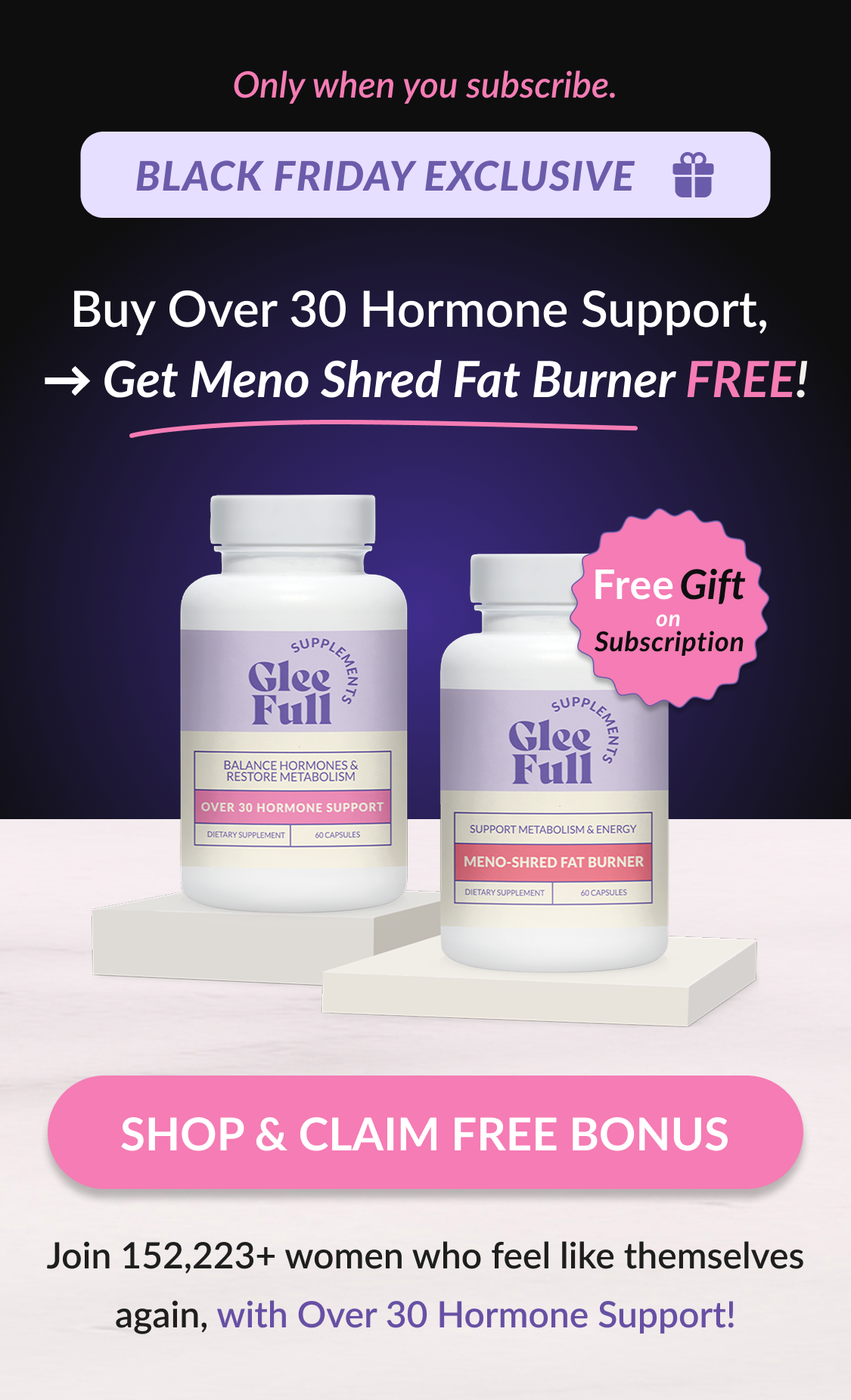 Buy 3x Over 30 Hormone Support & Get 3x FREE Meno Shred Fat Burner (worth $79 each, save $237)