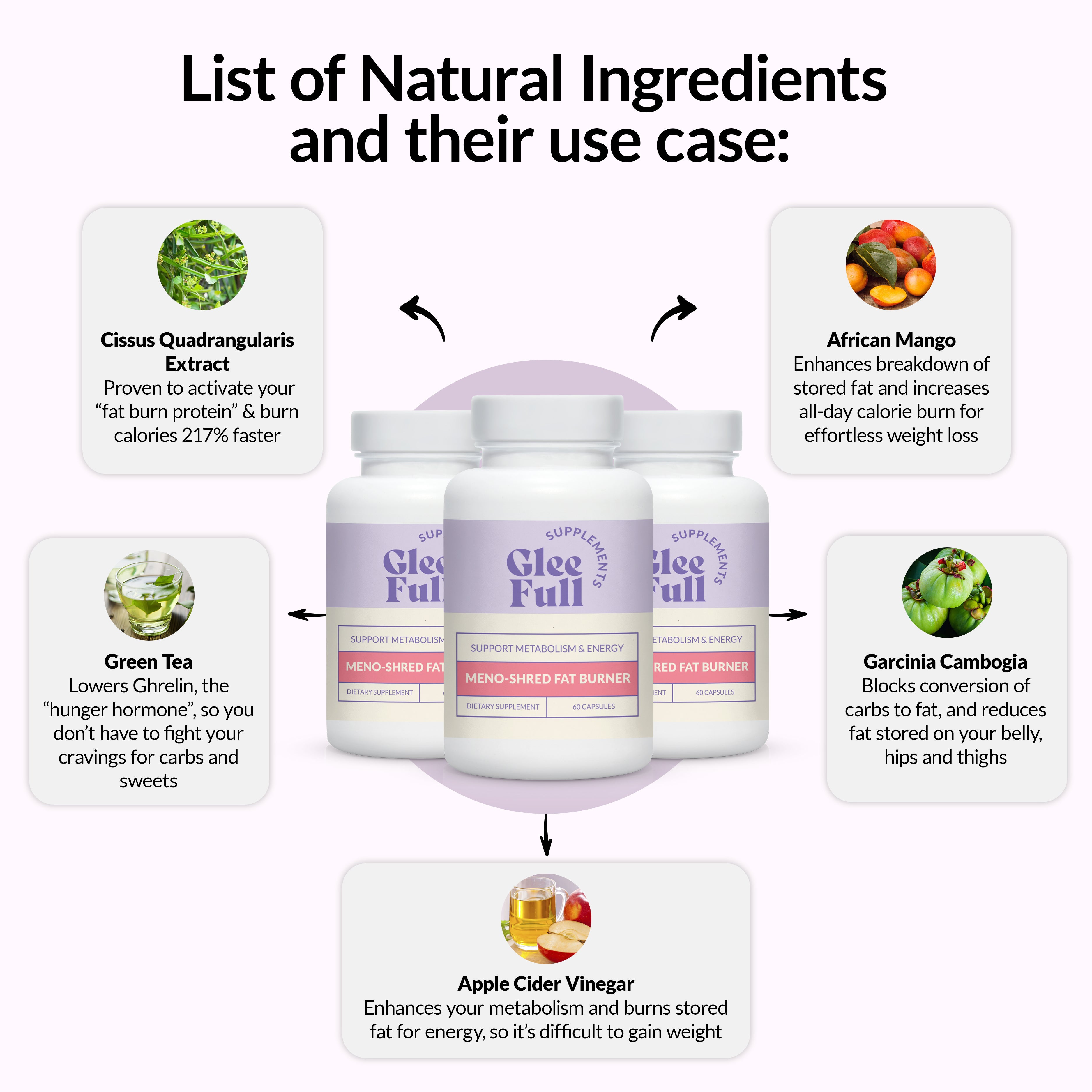 Meno-Shred Fat Burner contains the highest quality ingredients in the market and we stand behind our products. That's why we have the Best-In-Class 180 Day Money Back Guarantee.